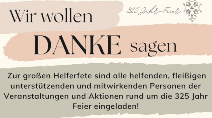 Mit einer Helferfete endeten die Aktivitäten rund um die 325-Jahr-Feier. Alle an den Feierlichkeiten Beteiligten waren zum Dank für ihre ehrenamtlichen Tätigkeiten eingeladen. Es gab kühle Getränke und Bratwurst. Vielen Dank auch noch einmal an dieser Stelle an alle Helfer!