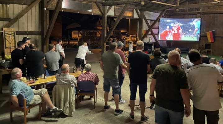 An diesem sommerlichen Abend stand das erste Achtelfinale der Fußball-Europameisterschaft gegen Dänemark an. Den 3:0 Sieg der deutschen Mannschaft verfolgten wieder viele Zuschauer in der Schützenhalle bei kühlen Getränken und frischer Bratwurst im Brötchen.