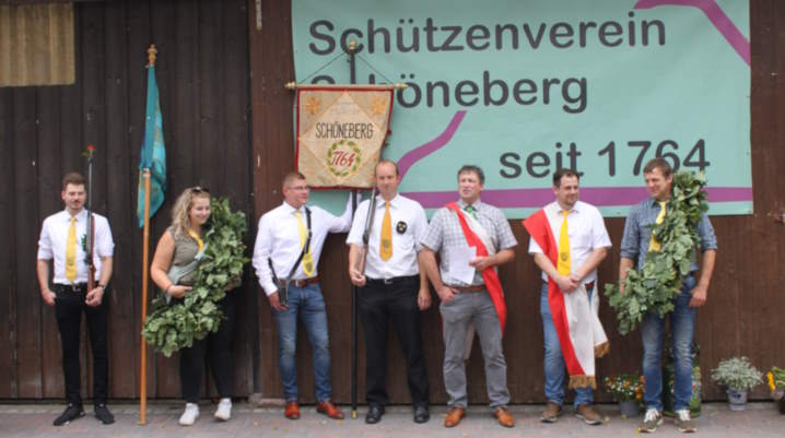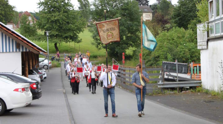 Das traditionelle Schützenfest begann mit dem Festzug durch das Dorf. Er startete beim Schützenmeister Florian Jäger und endete auf dem Festplatz. Leider durfte die Bundesstraße aufgrund von erhöhten Sicherheits-Anforderungen nicht abgelaufen werden. Eine Querung war zum Glück erlaubt!