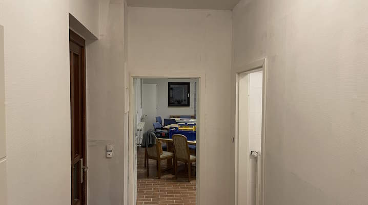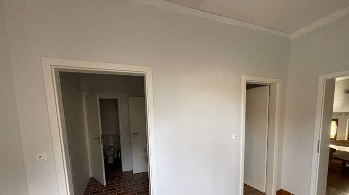 Daniela und Dagmar haben heute den Flur und die Toilettenvorräume gestrichen. Es wurde ein heller Grauton ausgewählt. Danke dafür! In den kommenden Tagen kann jetzt die neue Decke eingebaut werden. Anschließend erfolgen noch Restarbeiten an den Fliesen und die Schiebetür.