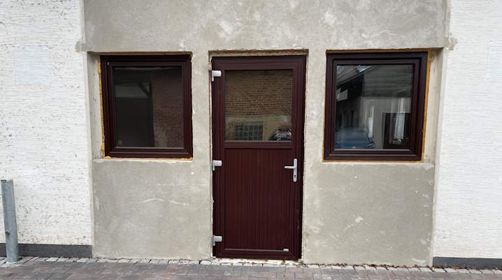 Heute wurde die neue Mauer von innen und außen verputzt. Die Fenster und eine provisorische Bautür wurden eingebaut. Die richtige Tür hat leider gefehlt und wird erst in ca. 2 Wochen geliefert. Weiter geht es mit Vorbereitungen für die Malerarbeiten, Elektroarbeiten und den Toiletten.