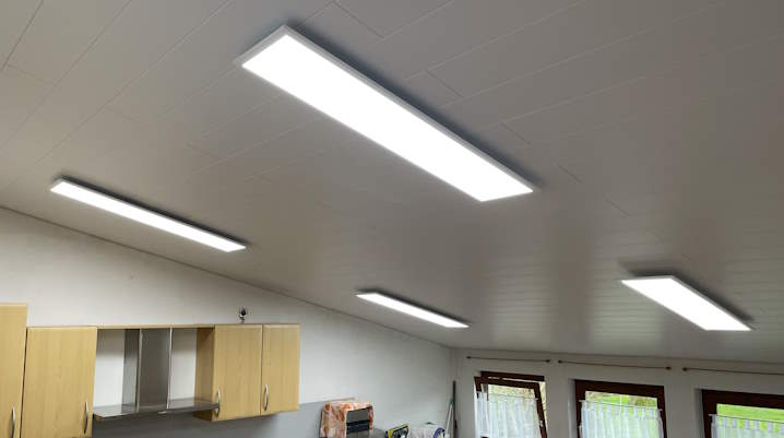 Heute wurde die neue Beleuchtung in der Küche installiert. Vier LED-Panels sorgen ab sofort für eine gute Ausleuchtung der Küche. In den kommenden Tagen sollen dann die Küchenwände gestrichen werden. Danach werden dann noch die neuen Endleisten an der Decke montiert.