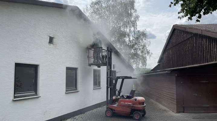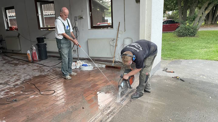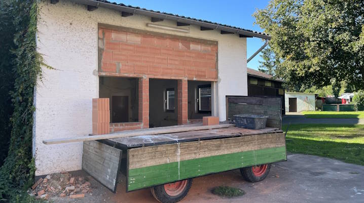 Nachdem am 19.07.2023 die alte Fahrzeughalle leer geräumt wurde ging es heute weiter. Das Tor wurde ausgebaut und die Löcher für die Auflage der Balken der Zwischendecke wurden erstellt. Eine sehr staubige Angelegenheit. Vielen Dank an die Helfer!.