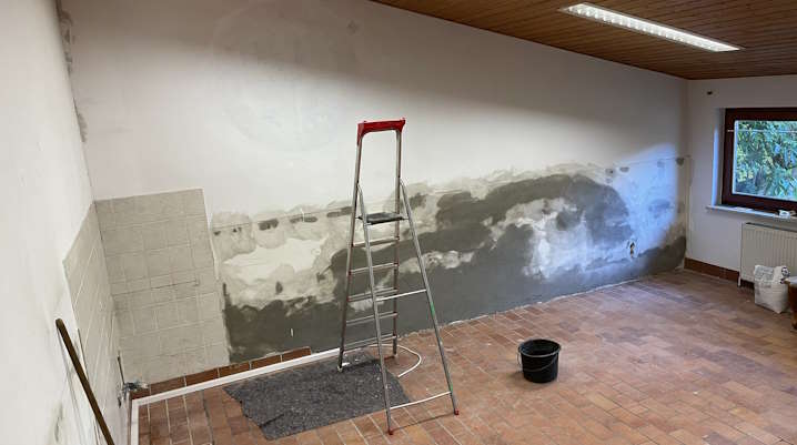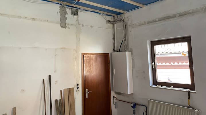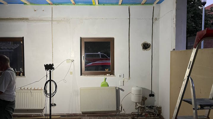Am 16.08.2023 wurde mit den Elektroarbeiten begonnen. Schlitze für die Kabel und Löcher für Steckdosen und Schalter wurden vorbereitet. Am Donnerstag wurden dann die ersten Kabel verlegt und die Unterputz-Dosen eingegipst. Vielen Dank an die Helfer und für die Verpflegung!