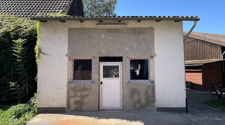 Heute wurden die Mauerarbeiten abgeschlossen. Auf einem neu erstellten Betonfundament wurde die Mauer in drei Arbeitsschritten gebaut. Als nächstes können die geplanten Fenster und die Tür eingesetzt werden. Dann geht es weiter mit Elektro- und Putzarbeiten.