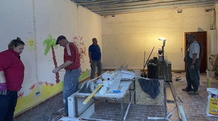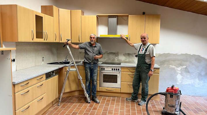 Am 23.06.2023 haben die Arbeiten zum Umbau der alten Feuerwehr zum Dorftreff begonnen. Der Schulungsraum wurde von den alten Einbau-Möbeln befreit und am Wochenende für den Einbau einer neuen Küche vorbereitet. Diese soll noch vor dem Schützenfest funktionsfähig sein.